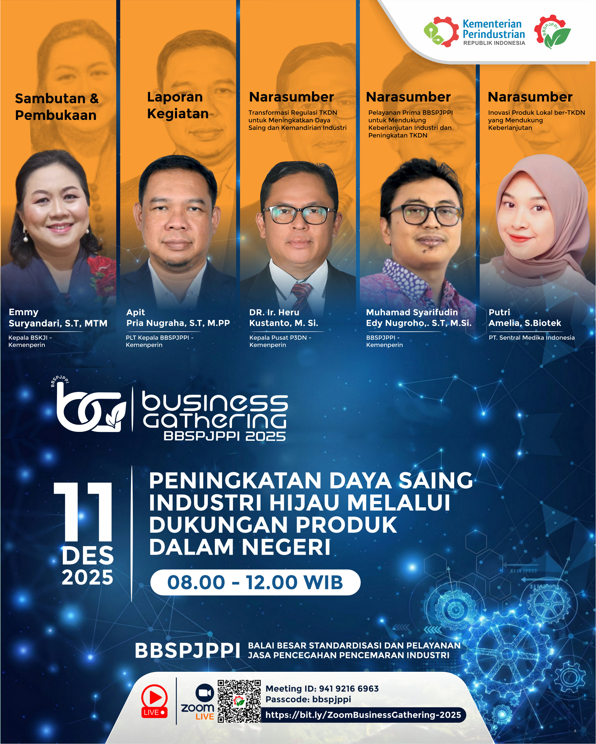 Dalam rangka meningkatkan pelayanan jasa serta memperkuat sinergi dengan industri, Balai Besar Standardisasi dan Pelayanan Jasa Pencegahan Pencemaran Industri, (BBSPJPPI) akan melaksanakan kegiatan “Business Gathering BBSPJPPI 2025” dengan tema “Peningkatan Daya Saing Industri Hijau melalui Dukungan Produk Dalam Negeri“ secara hybrid (online dan offline).
